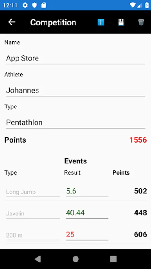 Track and Field Points Calcula Screenshots