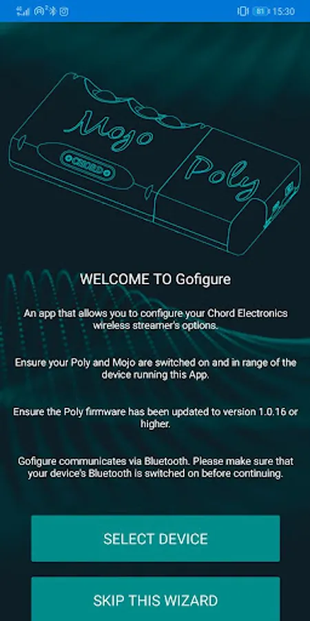 Gofigure for Chord Electronics is a convenient configuration app that allows you to easily view and modify the Wi-Fi, networking, Bluetooth, and playback modes of your Poly streaming device. Gofigure communicates via Bluetooth (BLE) and has the additional benefit of allowing you to check the firmware, mac address, SD card status, etc.