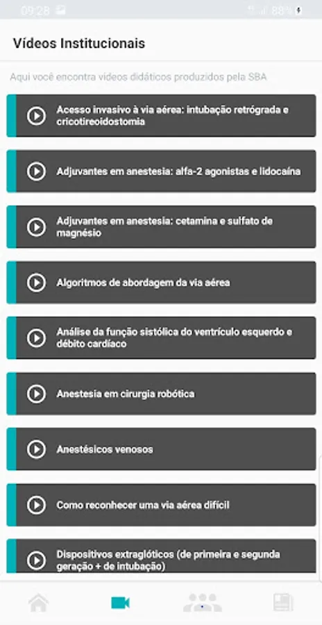 SBAapp is an application produced by the Brazilian Society of Anesthesiology to integrate its members, keep them updated and instrumented with high quality content for their professional practice.