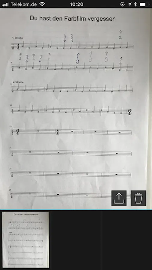 It turns your mobile device into a sheet music scanner! Simply take one or multiple photos of your sheet music and transfer it to the desktop version of ScanScore with the push of a button. There, you can start the recognition process, make corrections, tentatively, and export it to MusicXML or directly into the music notation program FORTE.