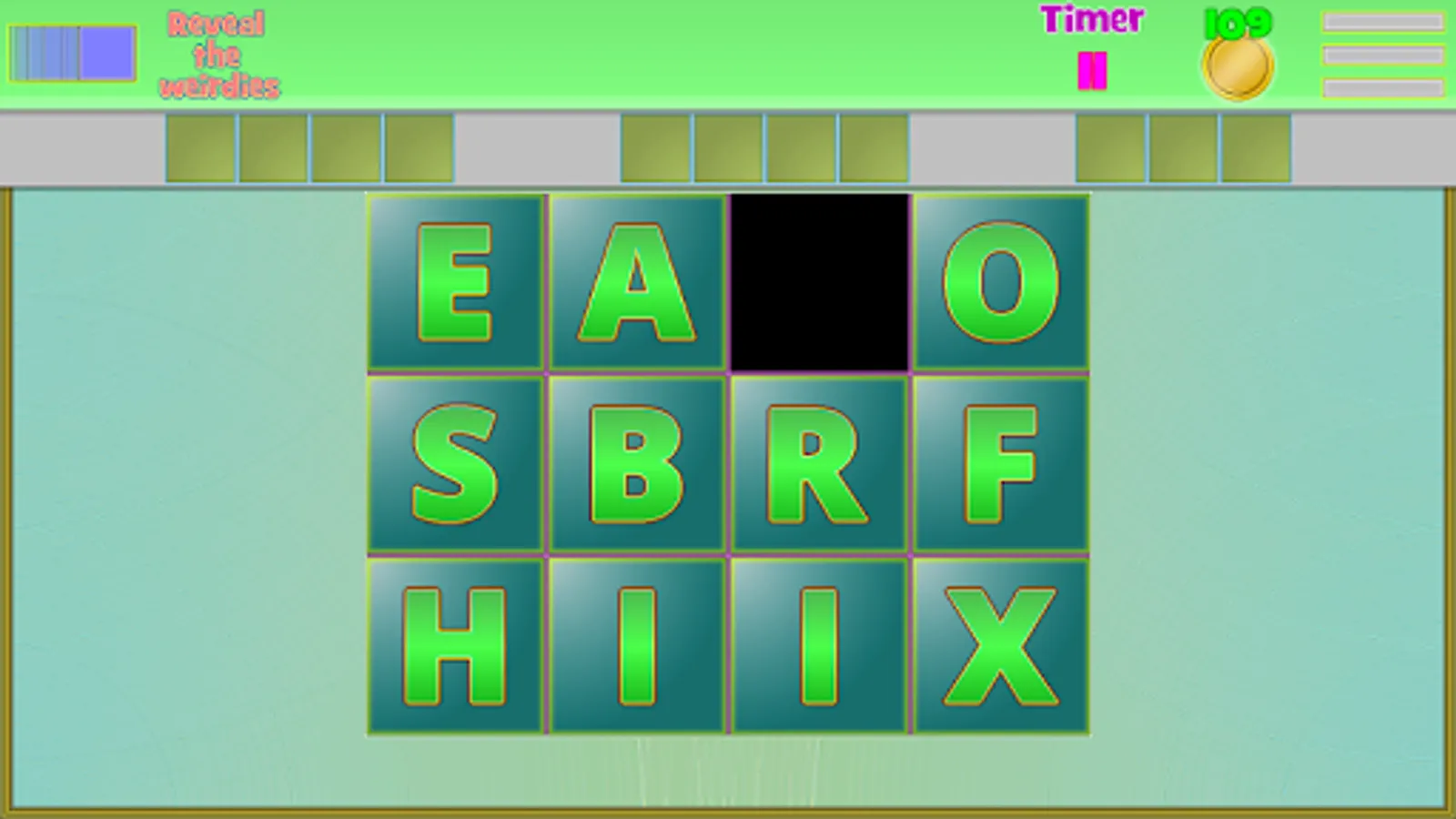 In this game, you'll take on a large collection of slider boards, each filled with tiles sporting letters. You can slide the tiles around like in a regular slider puzzle, but of course there is no picture for you to solve here.