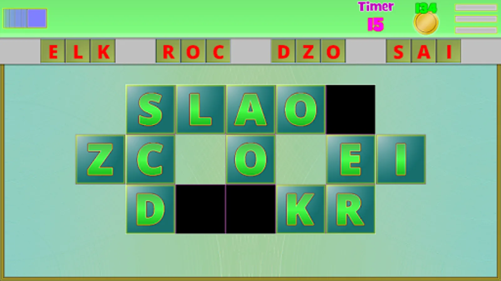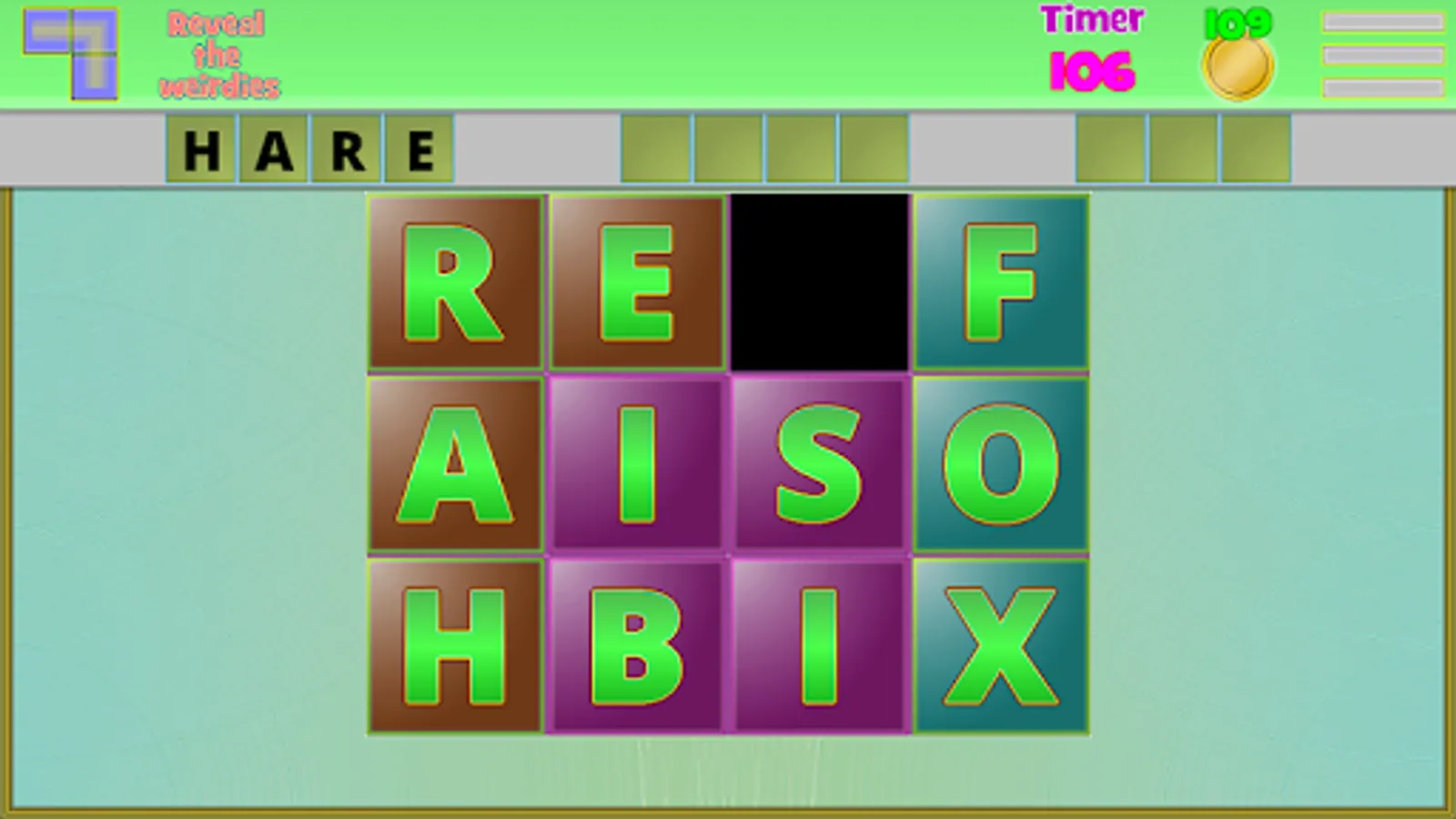A word bank : Scrab Slider rates words by a difficulty rating from 1 to 5 mostly based on how grotesque they look. I don't expect most of you to know the harder words, and that's what the bank is for. As you form words in the levels, they gradually get added to a mini dictionary of sorts. Form the harder ones enough times and you can actually view them in-game instead of only not-in-game. The non standard levels won't be showing you the answers on request, after all.