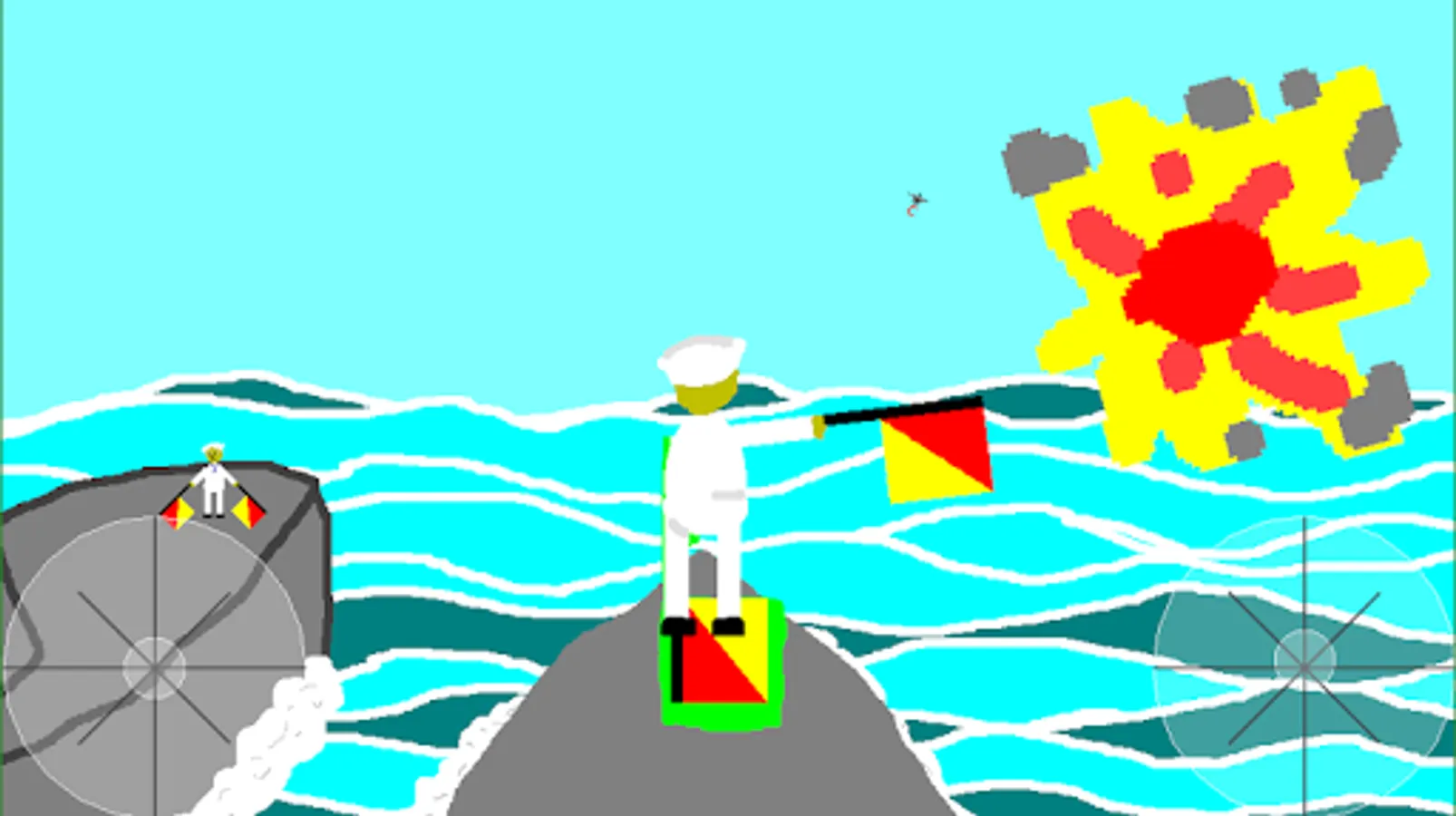 Learn the semaphore flag code while defending the seas from enemy jets. Match your flag positions to the letter on the planes to blow them up. Translate the flag-based messages of fellow sailors back into letters. Get points and find success!
