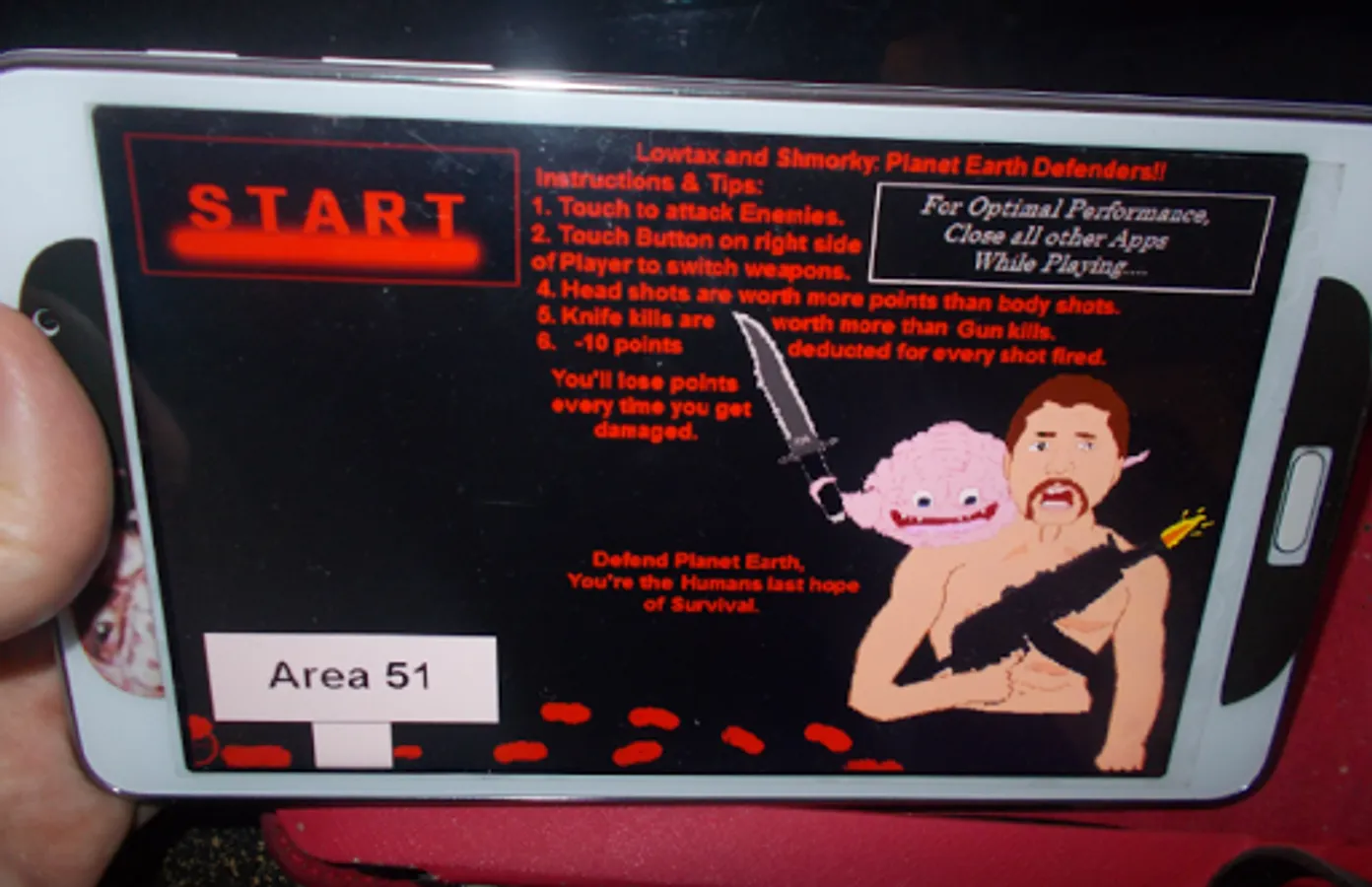 2. Touch the Switch Weapons button to switch from Lowtax's Machine gun or Shmorky's Military Knife!