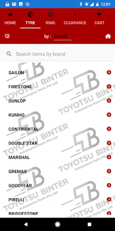 Toyotsu Binter Automotive Parts Pte Ltd already have online ordering system on web and enhance allow customer to order from mobile application. Customer can able search tyre by size , brand and model. There have shopping cart facility to make order through web service direct to ERP system.