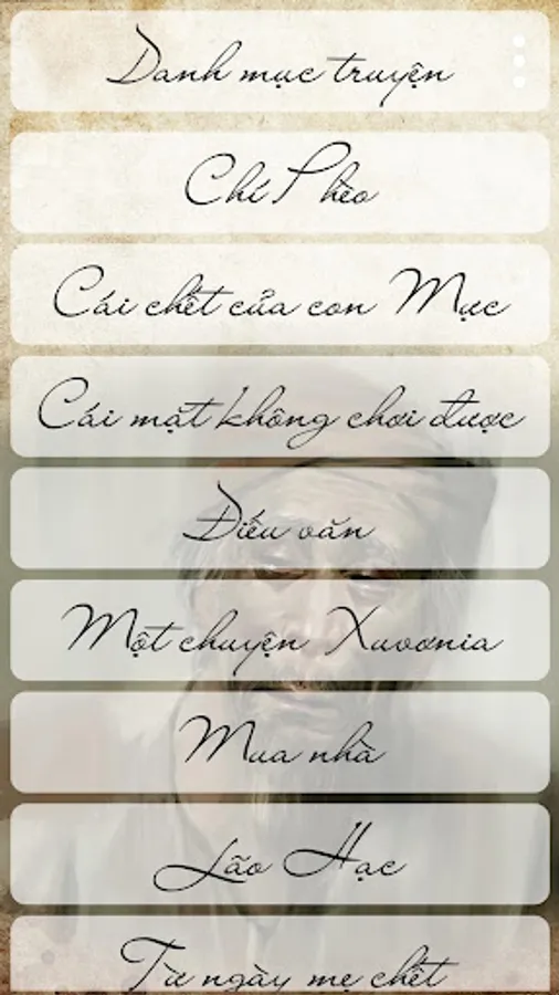 Application of a collection of famous works of writer Nam Cao such as: short stories of Lao Hac, Chi Pheo, Children are not allowed to eat dog meat, Attendance, A full meal ...; long stories Neighbors' stories, ...; Novel, Live, ....