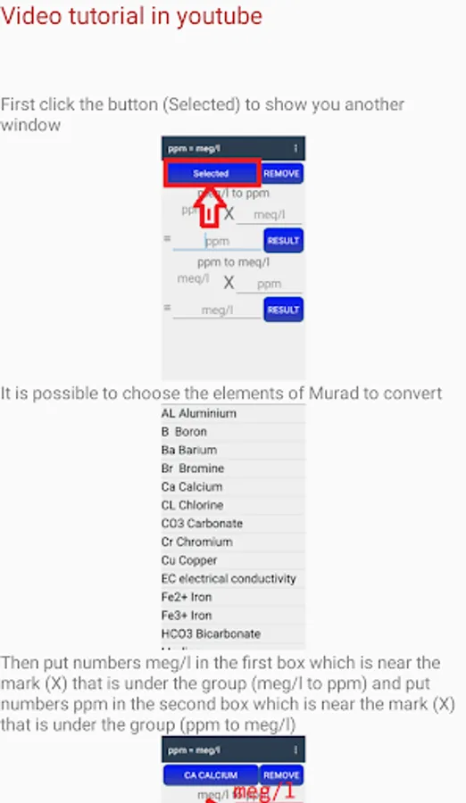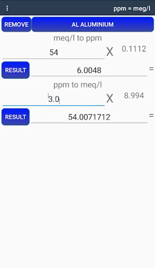 A program that converts units from ppm to meq/l and vice versa to into chemical laboratories contains 27 more common elements and has been designed by a site water2irrigation