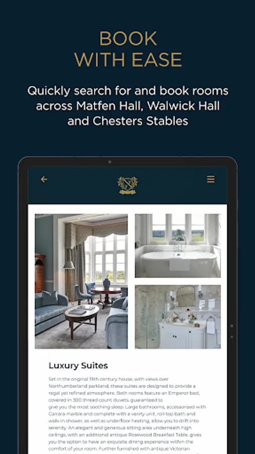Explore our luxury properties and plan your next escape to historic Northumberland through our app. Nestled away in the North East of England, near the world-famous Hadrian’s Wall, our estate is the perfect destination for memorable stays, harmonious spa treatments and dining experiences.