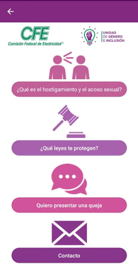 For this reason, the tool was defined in the field for CFE workers who may be affected by sexual harassment and harassment.