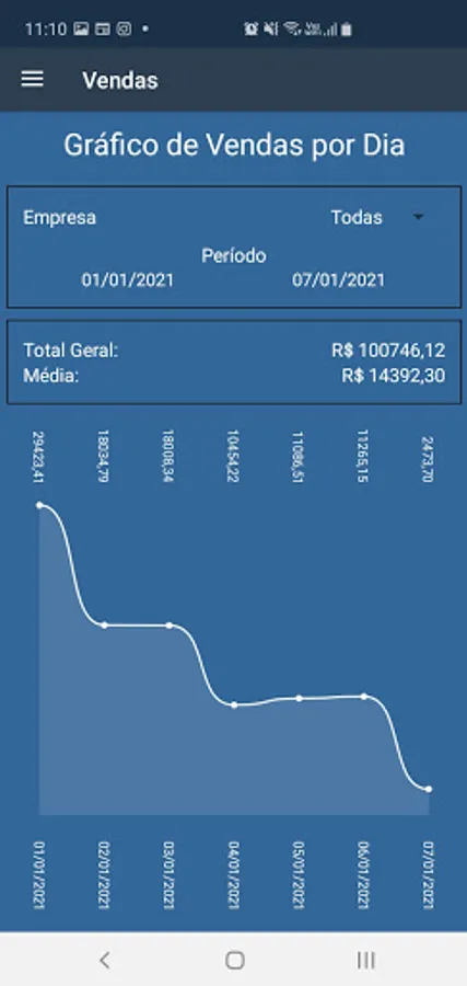 With this application, the owner of the establishment can consult sales based on the period performed by his store