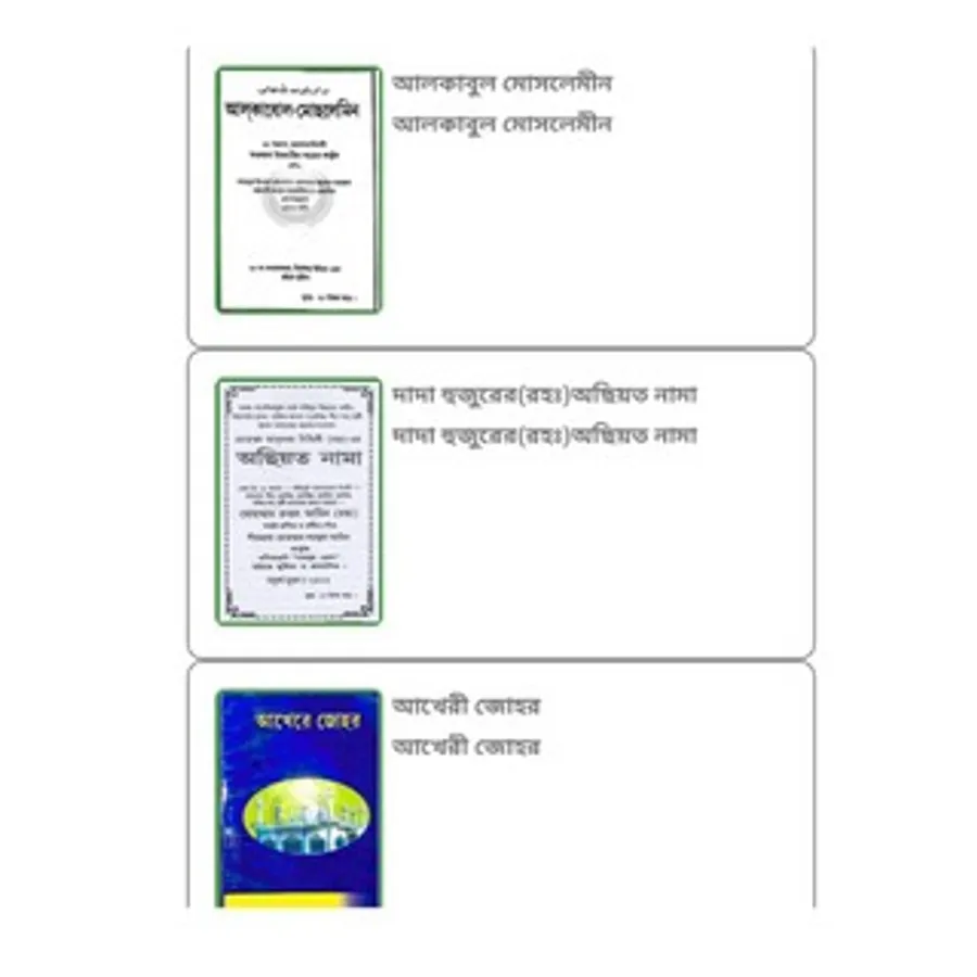 দাদা হুজুরের সিলসিলার সকল মুরিদদের সিলসিলার উপরে অটুট রাখতে সিলসিলার সব গুরুত্বপূর্ণ কিতাব। নিজে পরুন এবং অন্যকে পড়তে সাহায্য করুন।