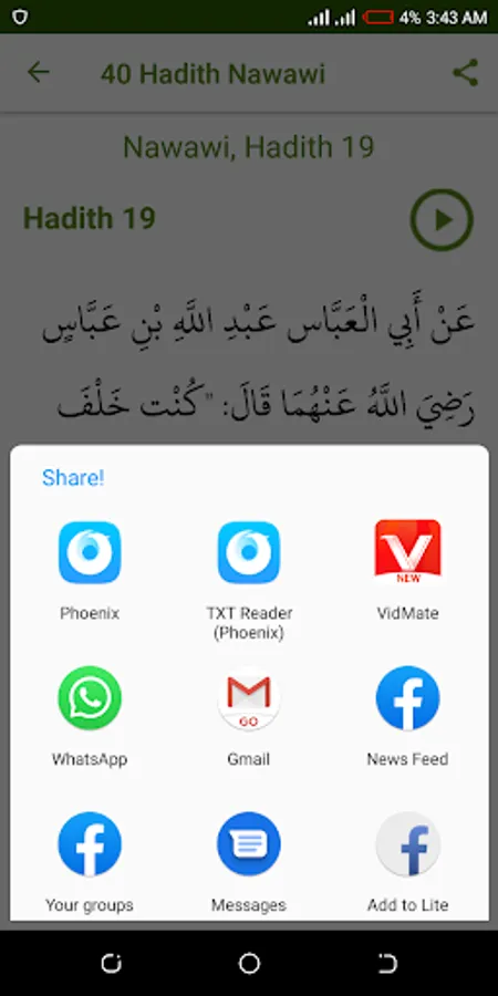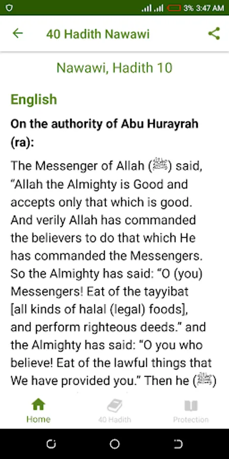 The most recognized App that contains 42 Hadith An-Nawawi which is easy for reading and listening, you can easily read each Hadith in a single page and listen to the offline audio from Sheikh Jafar Mahmud Adam Kano, Nigeria.