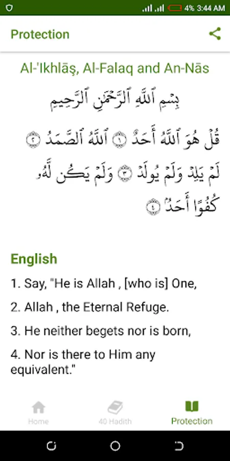 You can also read other important and prominent pages in the App such as Ayatul Kursiy, Amanar Rasul, Surah Al-Ikhlas and Al-Mu'awwidhatain (Surah Al-Falaq and Surah An-Nas) purposely for protection as it was explained in the Qur'an and Ahadeeth of the Prophet Muhammad Peace be upon him and more.