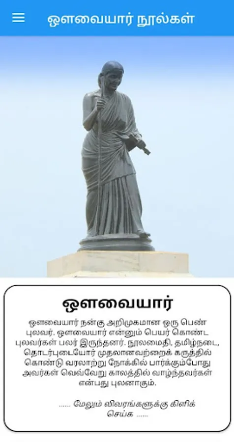 Avvaiyar is a well-known female poet. There were many poets named Avvaiyar. From a historical point of view, it is clear that they lived in different periods of time, considering the text, Tamil style, related persons, etc.