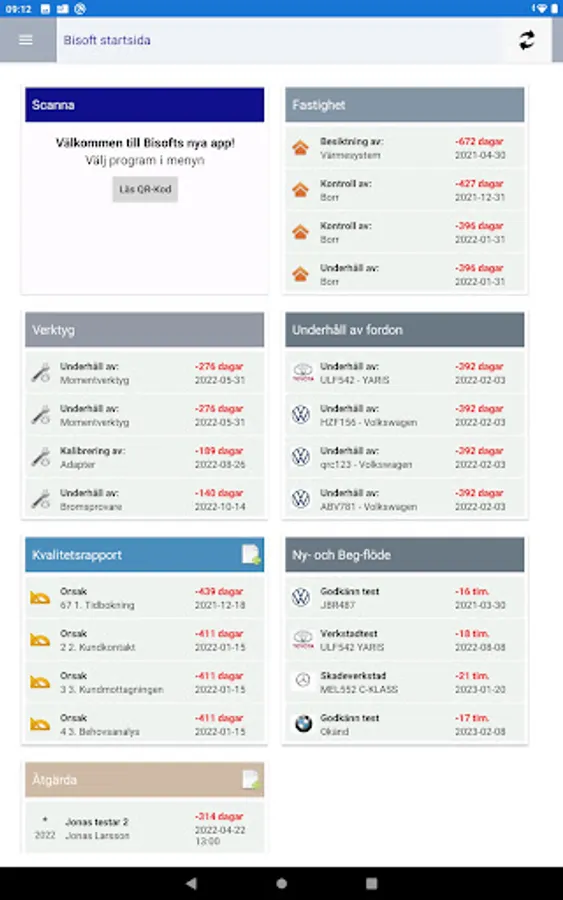 In the app, you can, among other things, take inventory, maintain your tools, gates and lifts and perform work steps on your vehicles, all in one and the same app.