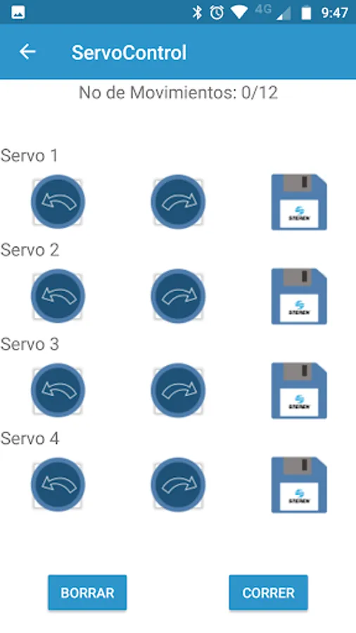 With this application you can control your own robotic arm manually using the buttons or programming a routine.