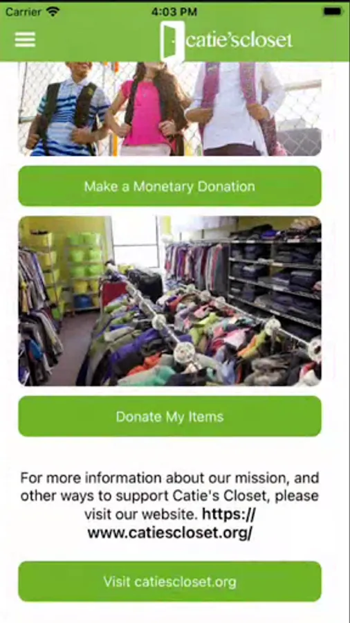Support local students by helping provide the basic needs of clothing and toiletries, using the Catie’s Closet app.