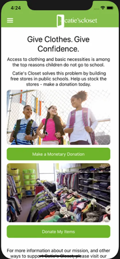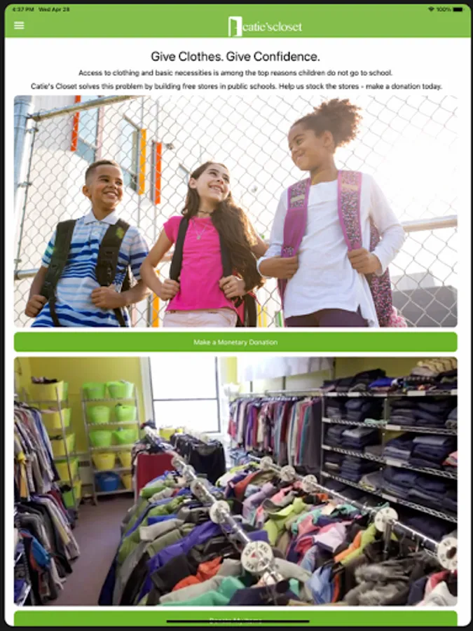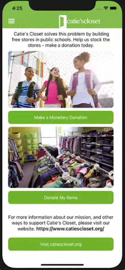 Your donation can change the outlook of a child’s day, month, year and life! Download the Catie’s Closet app to make a difference for one (or more) of the thousands of students we serve.