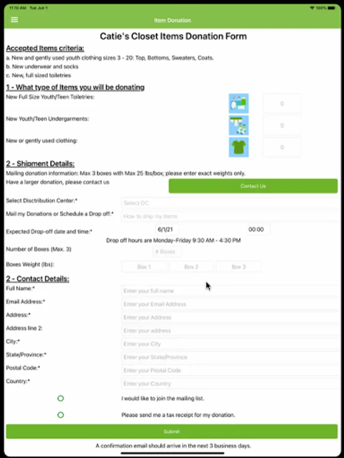 Whether you are able to donate money or items, we immediately update you on your impact: and number of students served. Every time you donate through the app, we will update your progress!