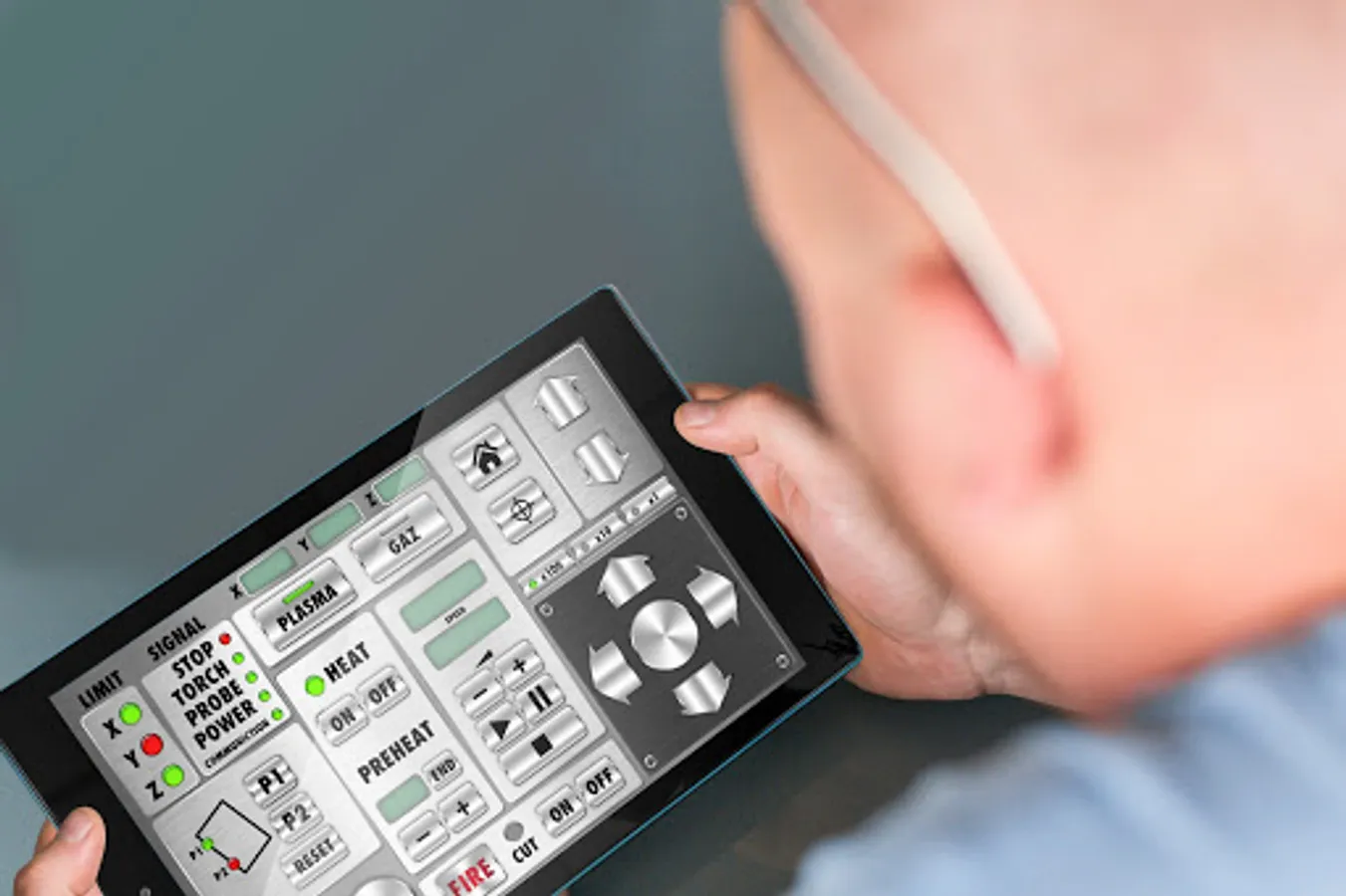 The remote control module allows you to operate the machine without having to work at the control panel. It increases even more the usability and ergonomics of the Kt7 CNC plasma and plasma-gas burners. It allows for even more precise selection of parameters in real time.