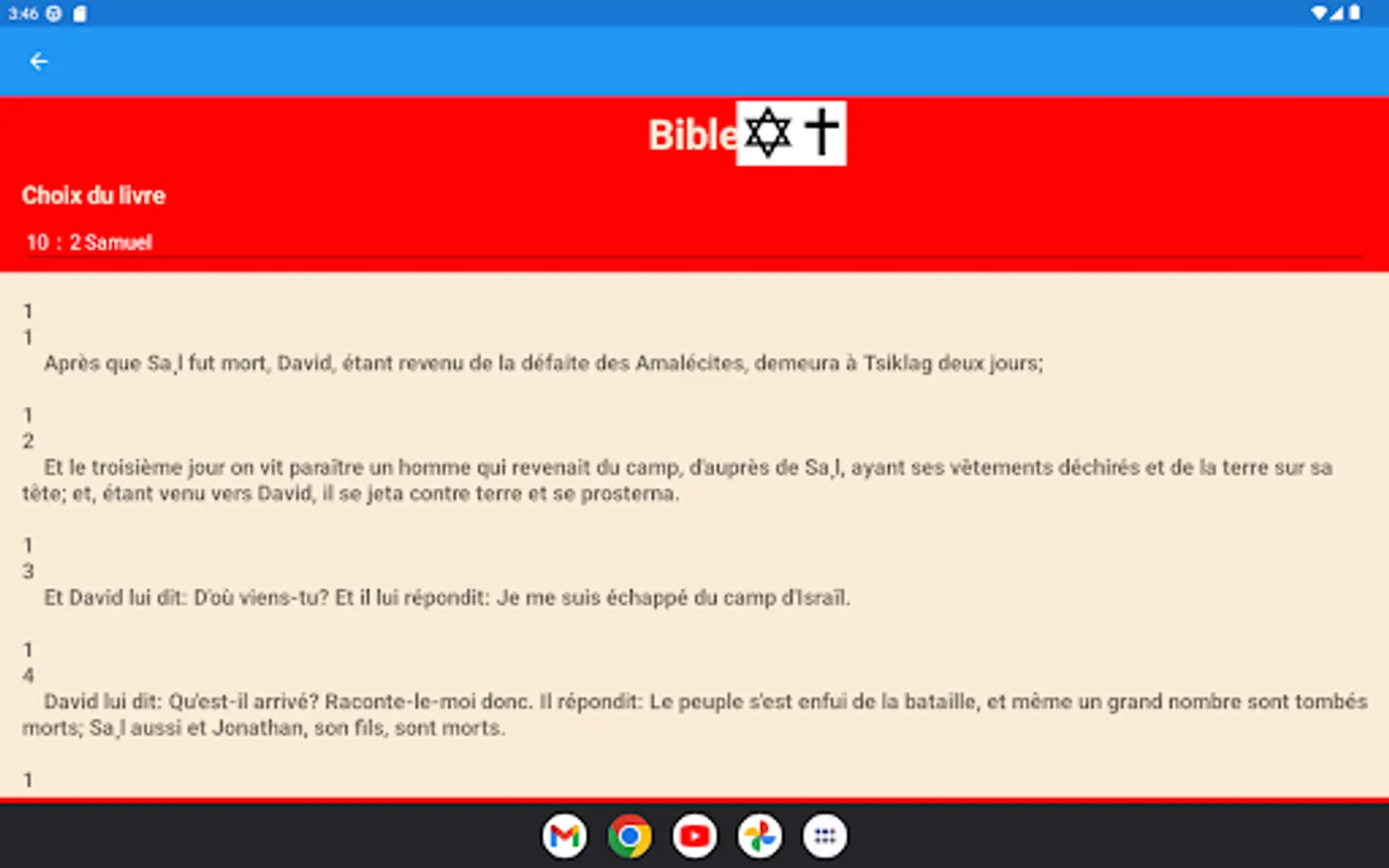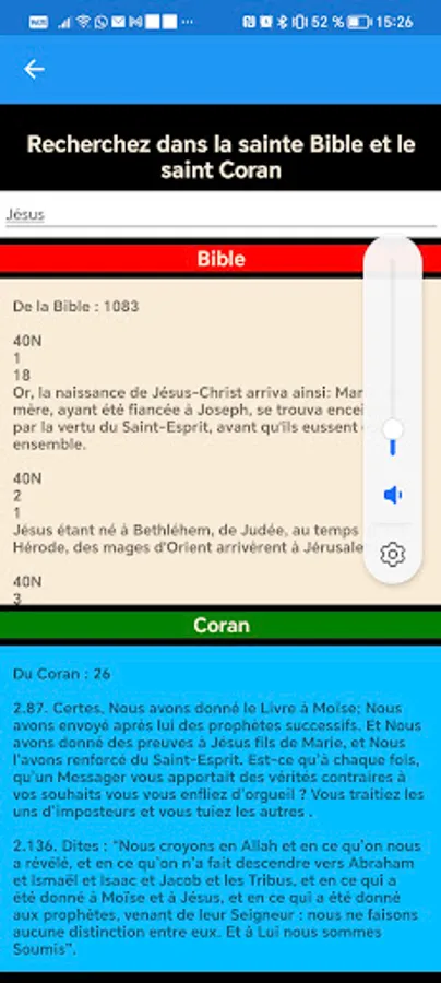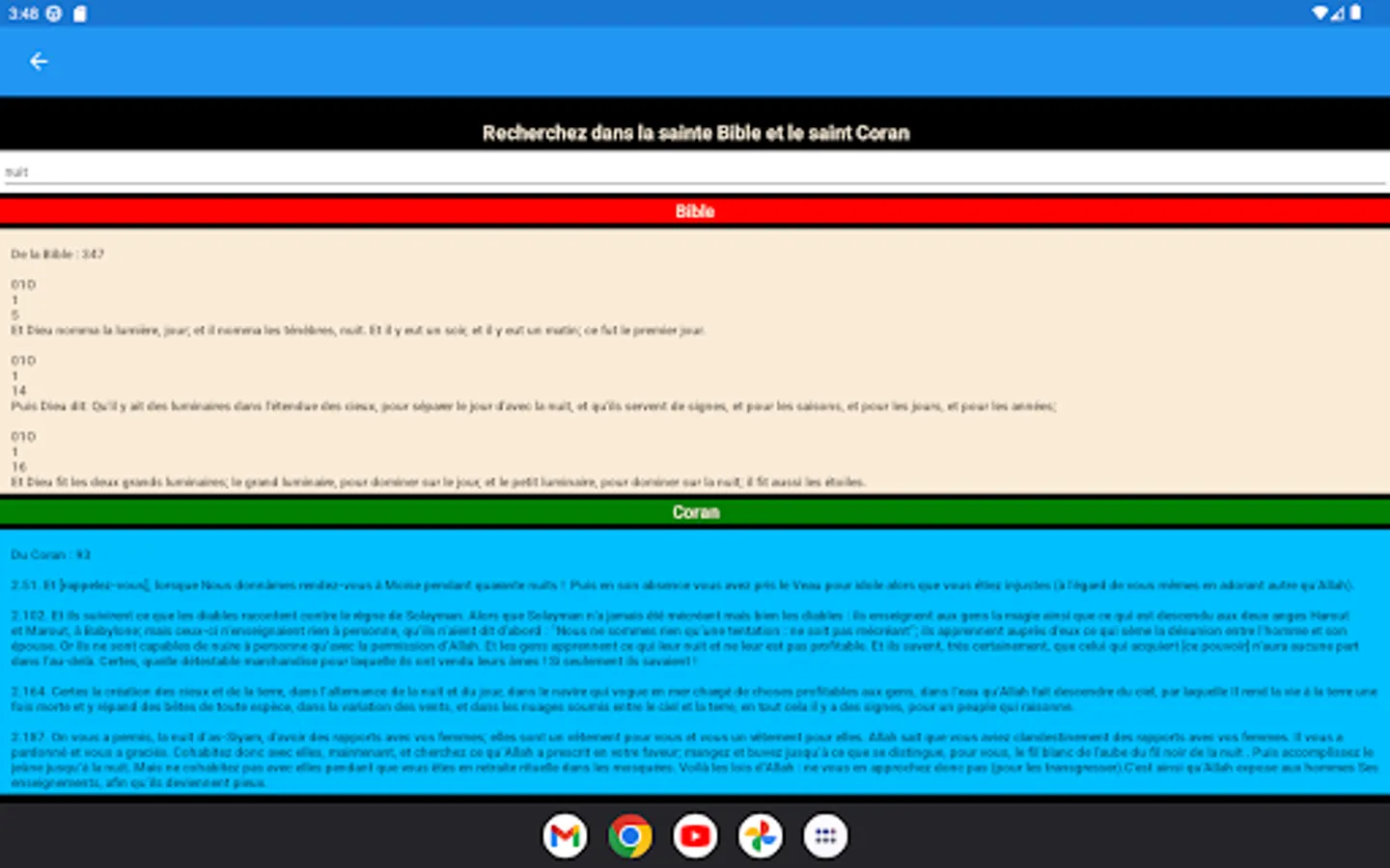 Cette application permet de lire les saintes écritures et en même temps faire des recherches simultanées de mots ou de phrases dans les écritures
