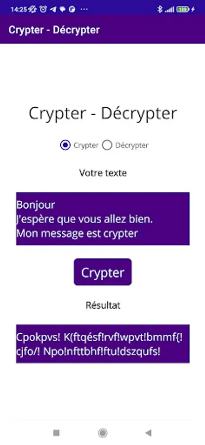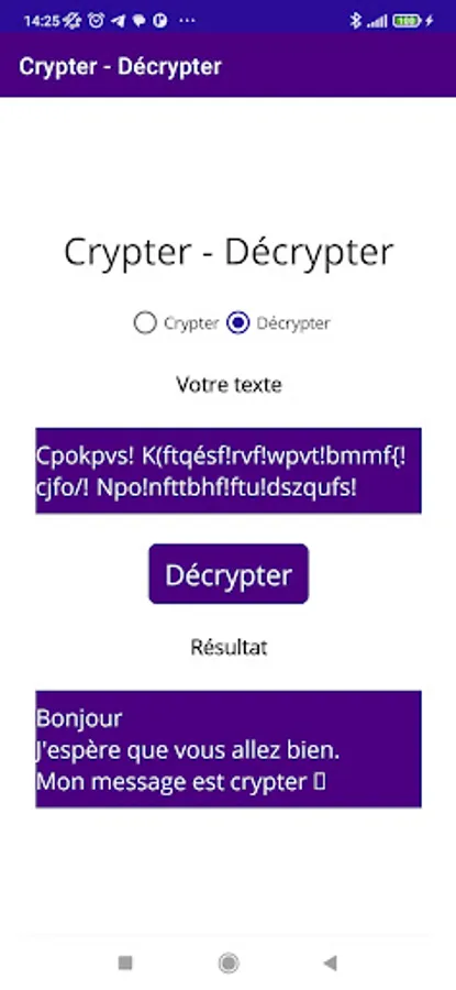 Le texte est automatiquement copié après le cryptage et le décryptage.