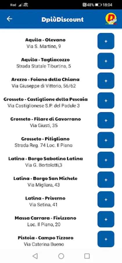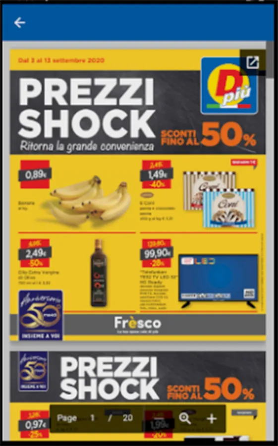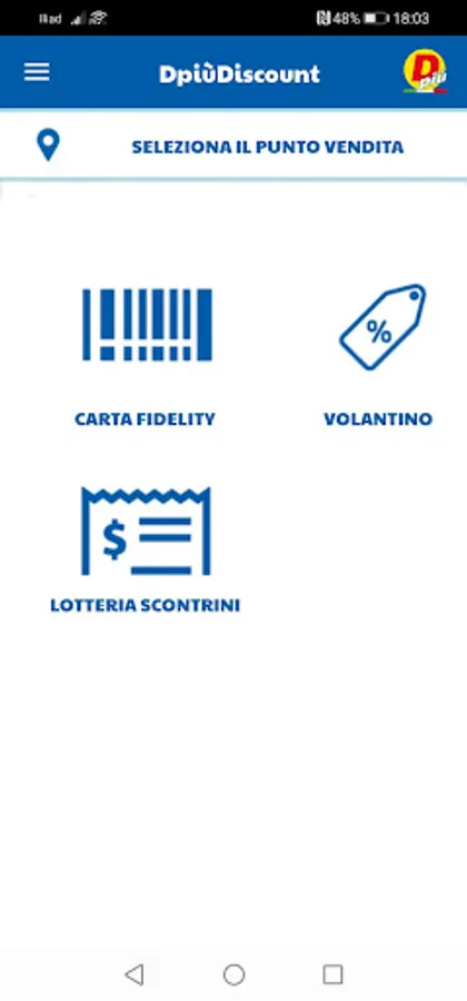 Consultation of flyer supermarkets Dpiù affiliates. Saving of fidelity card and receipt lottery code.