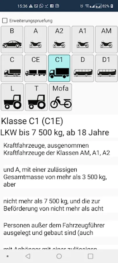 Bus and truck driving license: Class C, C1, CE, D, D1, L and T