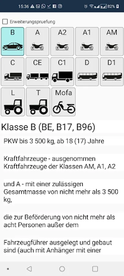 Helpful explanations on all questions relating to classes B, A, A1, A2, AM, moped