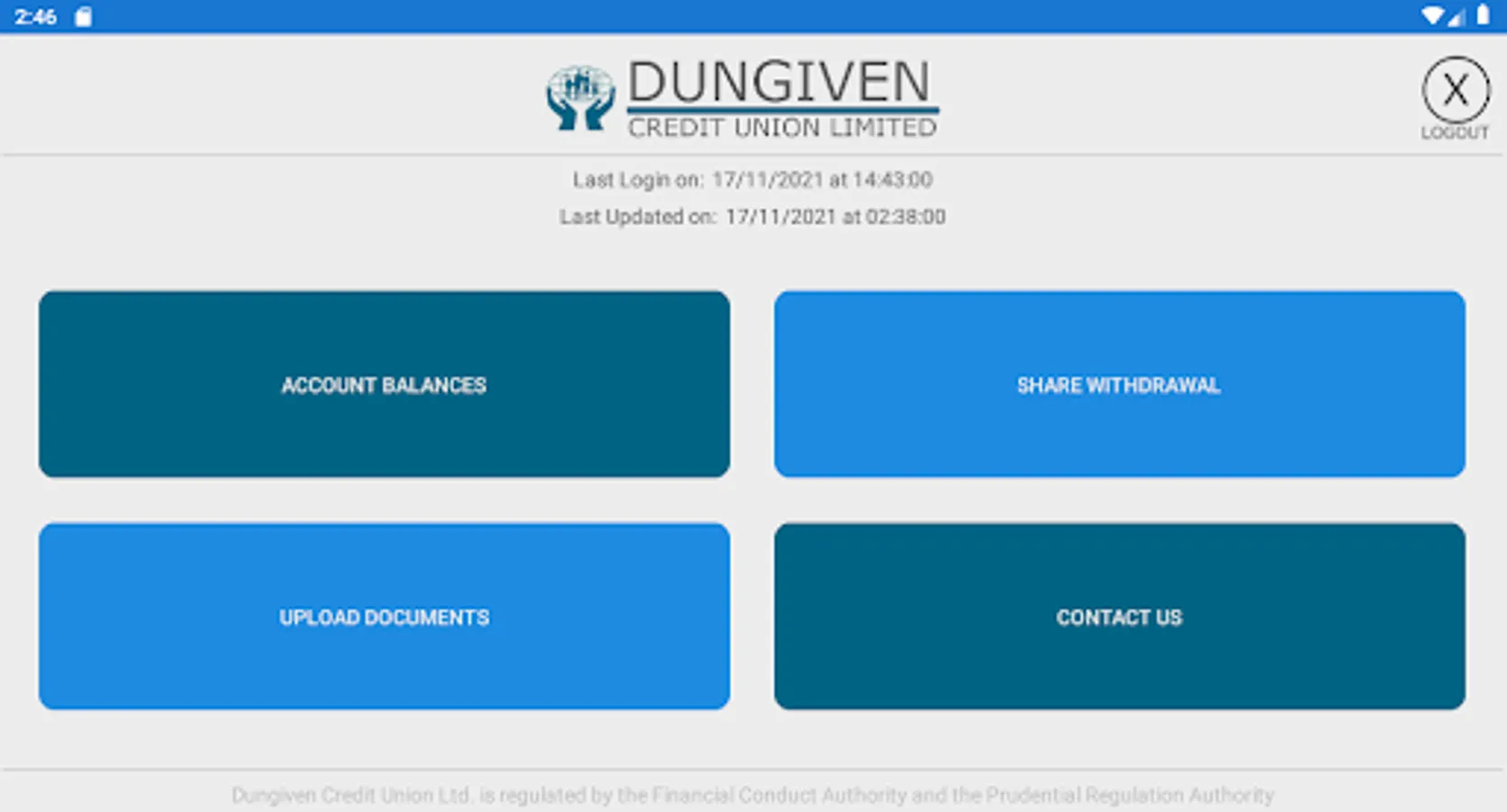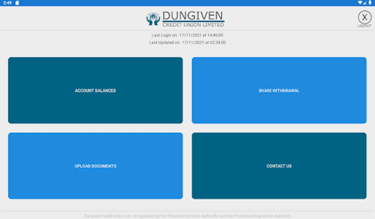 The Dungiven Credit Union Ltd. App allows members to access their account balances and recent transactions conveniently from their smart phone or tablet. It also allows users apply for share withdrawals and upload documents required by the credit union.