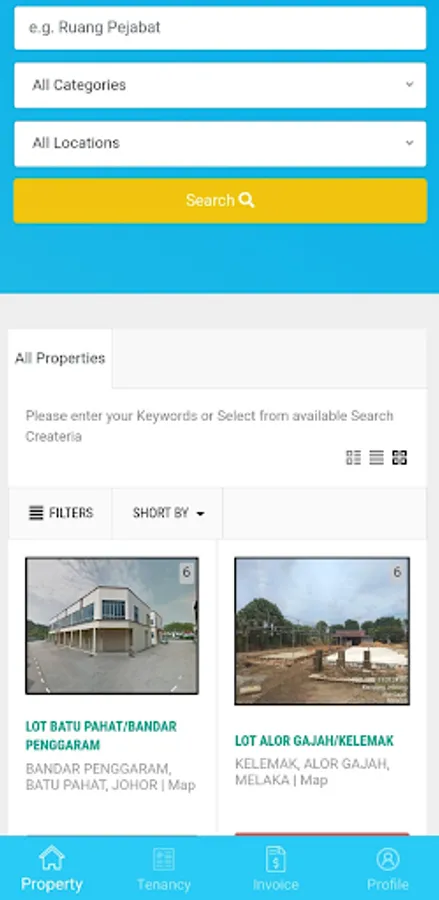 Properties you will find in e-Property RSS are all RISDA's lands or buildings available for rent in Malaysia only.