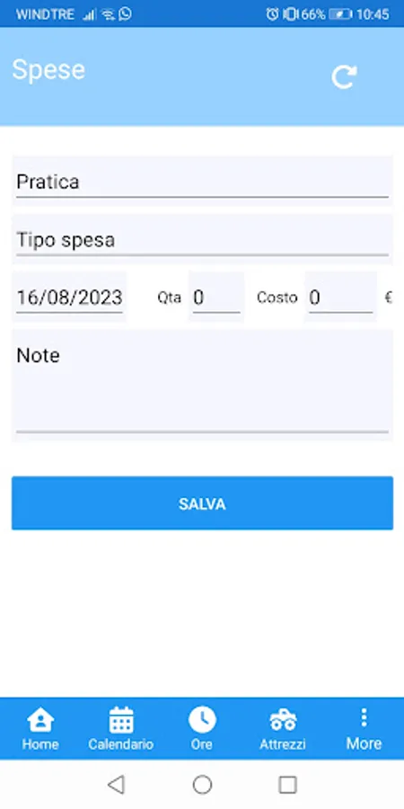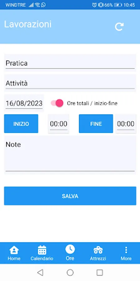Through the app it is also possible to enter the hours of equipment (excavators, vehicles, or machinery) which have a different cost and price and will make up cost elements for site accounting separately from the worker hours or anticipated expenses.