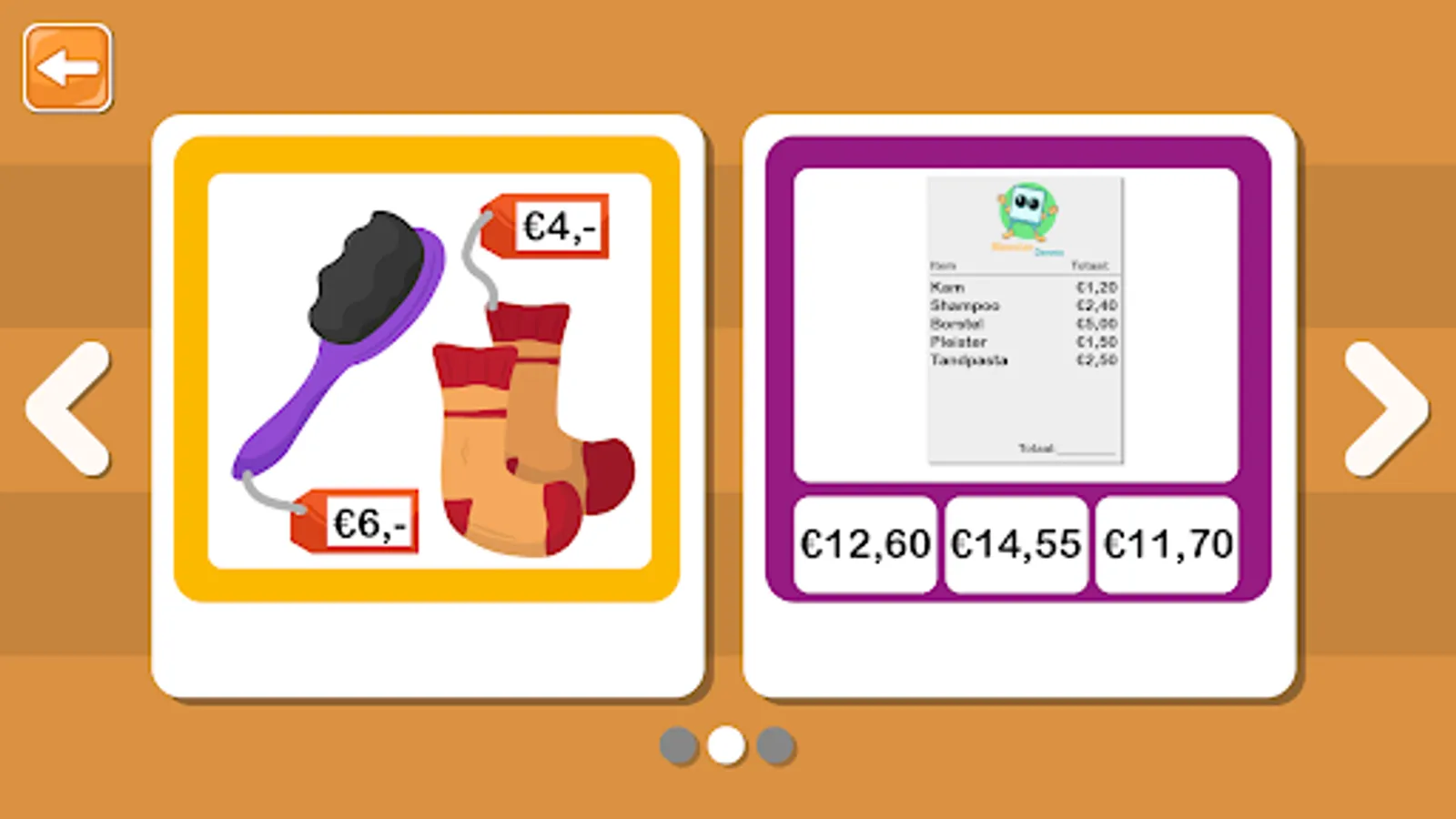 The application calculating with money was developed by Meester Dennis. This app was created to follow the six mostly used exercises to help children practicing calculating with money. The children learn to add money, to put it down, see and understand price lists and calculate how much cash must be returned.