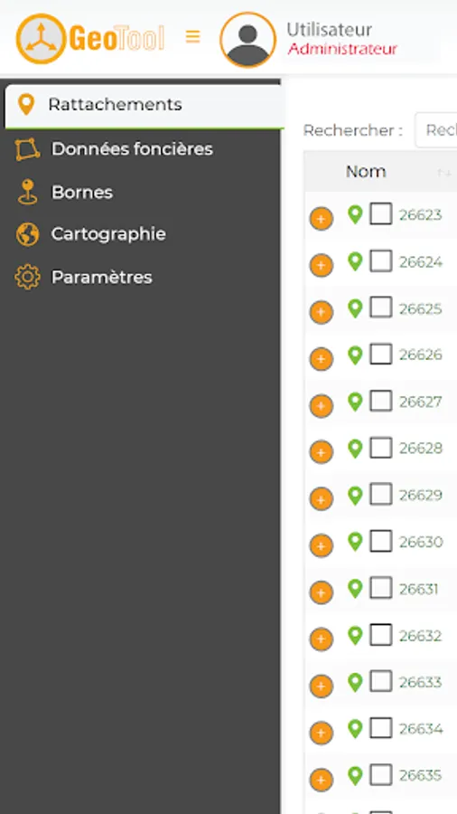 GeoTool is a webmapping platform which aims to allow the import of land data and connecting stations. This platform is designed to be easily accessible online and can be used by different types of users, such as land professionals, developers of real estate projects and the public. It also offers the possibility to search and download these data in dat and dxf format. In addition to these basic functionalities, the platform also offers data visualization, such as administrative breakdown and any other dxf file to help you to locate.