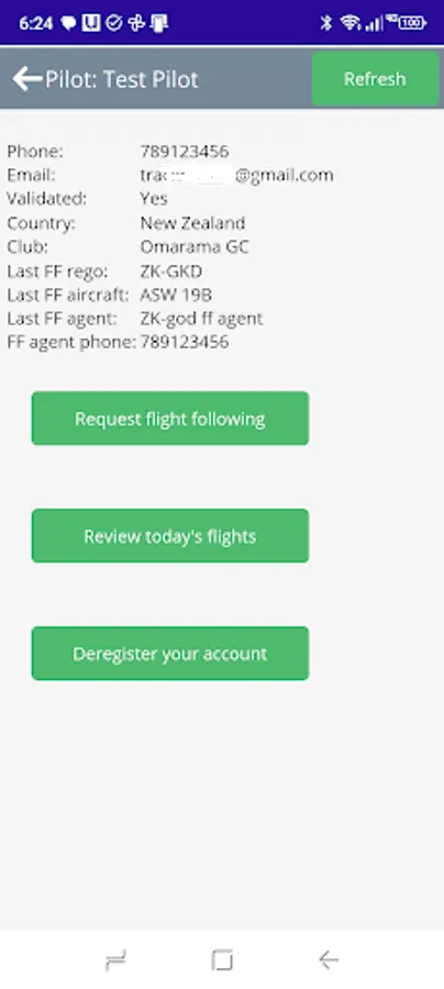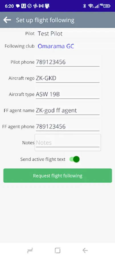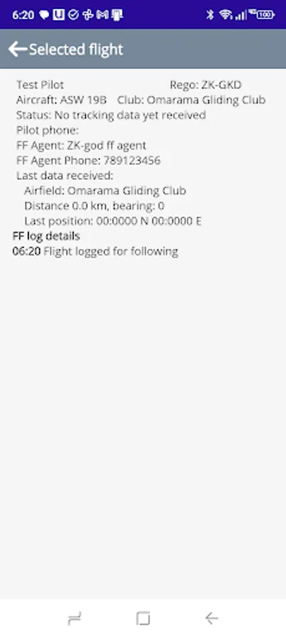 Once registered the app is used to set up the flight on the flight following server, and to subsequently monitor that and other flights from the gliding club.