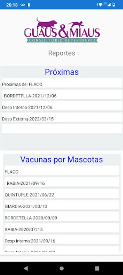 Así mismo Guaus&Miaus lleva el expediente de los pacientes en lo que se refiere a medicina preventiva, vacunas, desparasitaciones internas y externas, con reportes en donde nos recuerda las próximas vacunas en donde con solo apretar un botón automáticamente genera el mensaje de WhatsApp al cliente para agendar su próxima consulta.