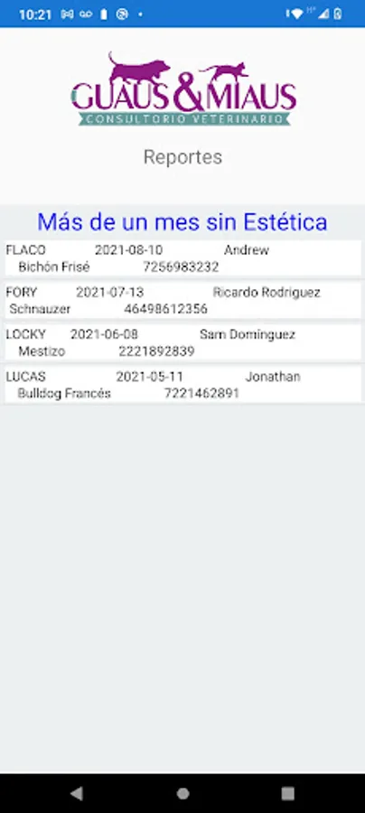 Guaus&Miaus lleva el control de los servicios de estética que se realizan, enviando recordatorios a los clientes cuando ya tengan determinado tiempo de no llevar a su mascota al servicio de estética.