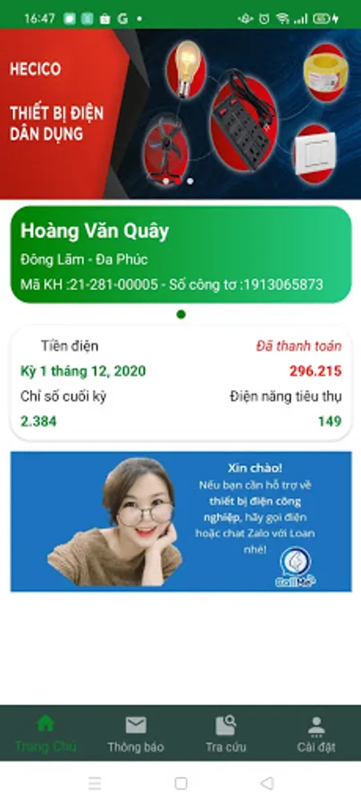 ứng dụng giúp người dùng theo dõi tiền điện, hóa đơn điện tử và chỉ số điện tiêu thụ qua các tháng