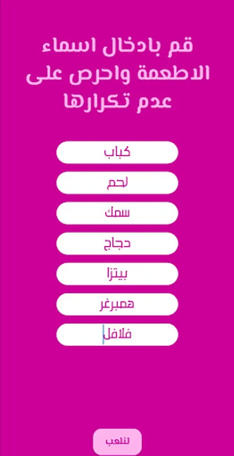 The game adds another name to the names of the foods that you entered, which is the phrase "I am hungry".