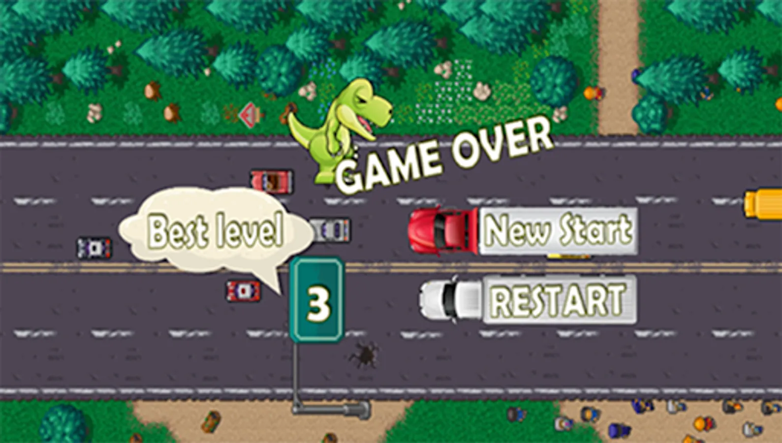 귀여운 다이노 컨트롤을 통해 다이노가 장애물과 차를 피해 파라다이스에 도착 할 수 있게 해주세요~