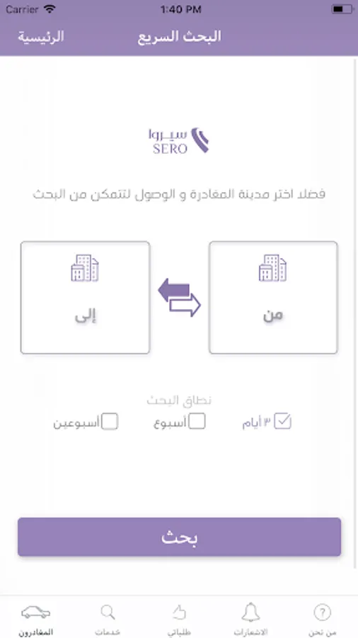 Sero App is the easiest and fastest way to search For Road Trips Between The Cities Of The Kingdom Of Saudi Arabia.