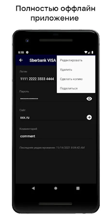 This application will allow you to generate the most secure passwords, with a choice of your settings, save your records in one place, conveniently store, view, export, as a result - store anywhere.