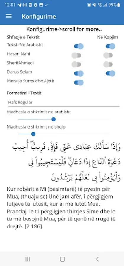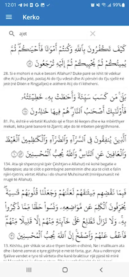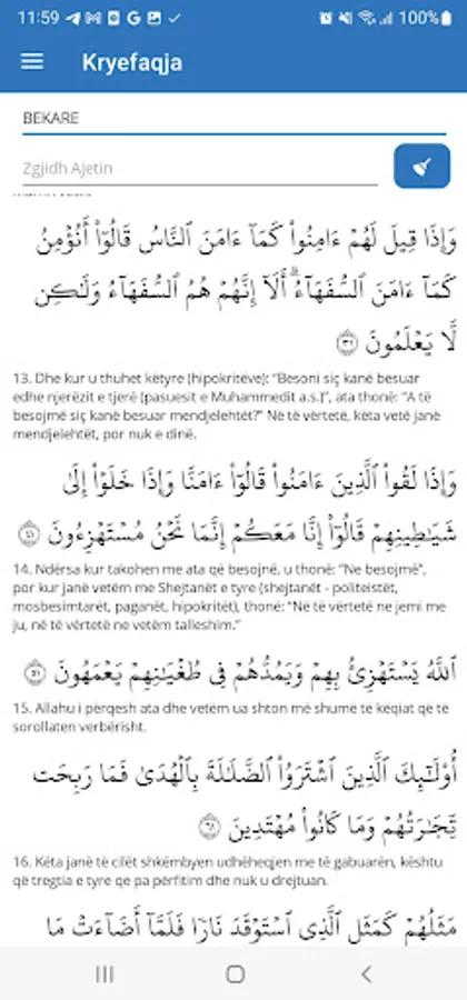 Kurani famëlartë me përkthim në gjuhën shqipe , ne 3 perkthime, Hasan Nahli, Sherif Ahmedi, Darus selam, i cili te mundeson te besh edhe kerkim per nje ajet te caktuar.