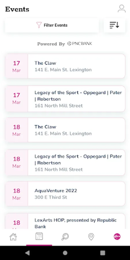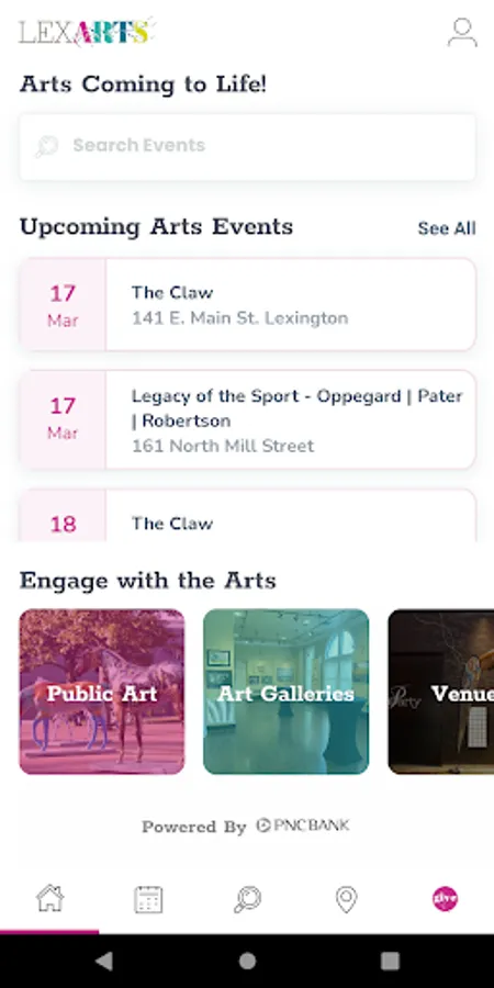 "Welcome to the LexArts app! Here you can view art events around Lexington, as well as find public art galleries.