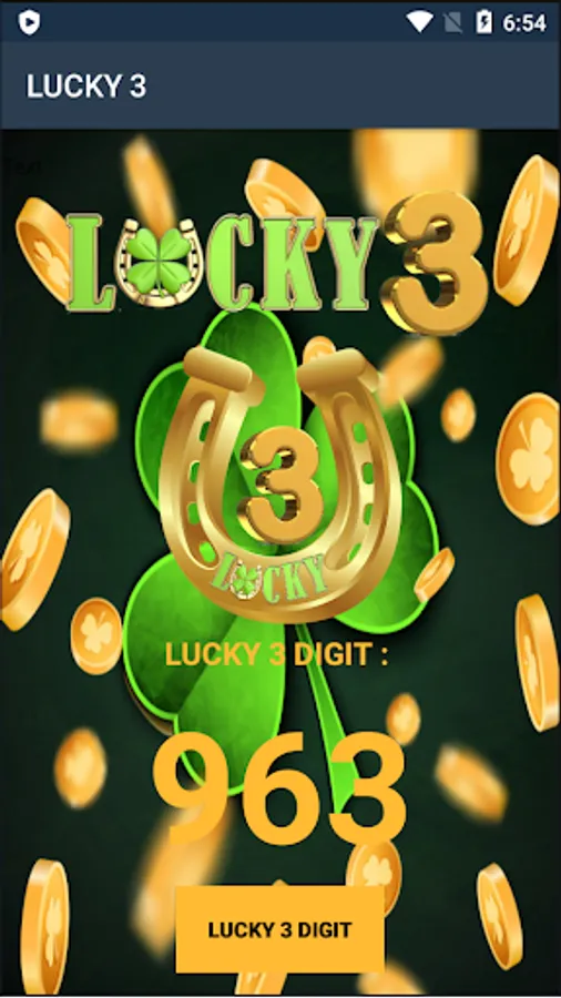 This mobile application is made for educational purposes only. This is a 3 digit generator application named "LUCKY 3" wherein it will give 3 random numbers every time the user taps the button. This could also be used for entertainment.