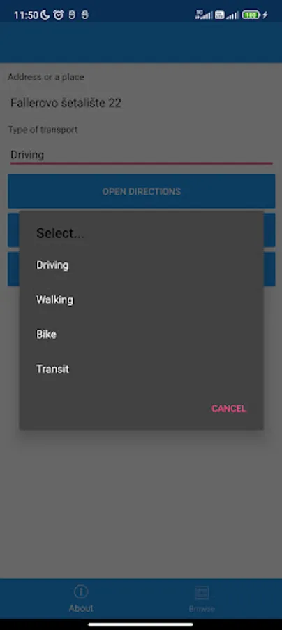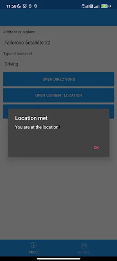 Main purpose for this app is when entered some address in text and then on button click it should say if the user is at given location, or even get directions to that place and also get his current location.