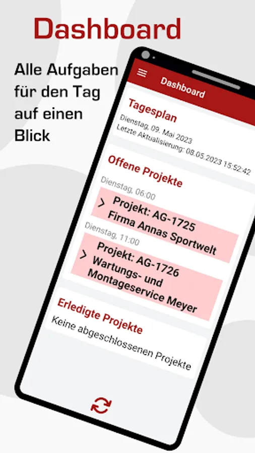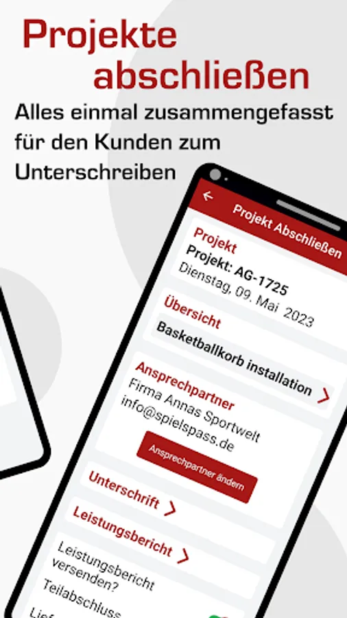 Once the employee has stored all consumables and working/travel times in the app, the activity can be completed and automatically sent back to the back office. From there, this can be calculated either automatically or manually directly to the customer as required.