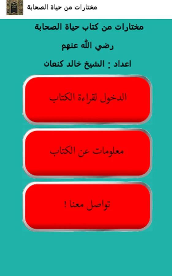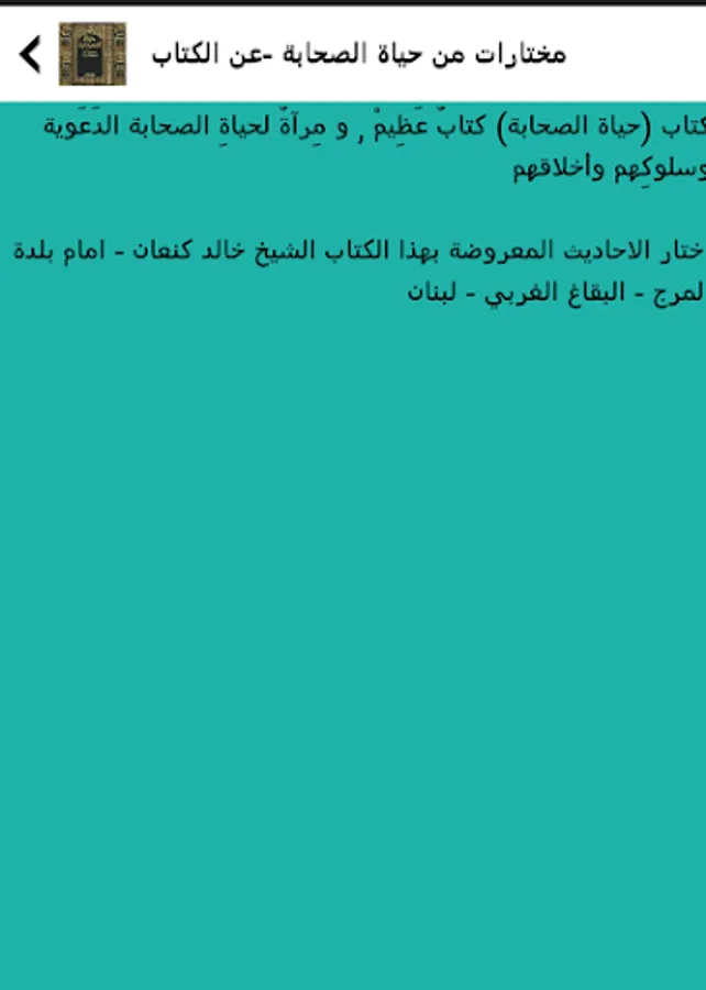 كتاب حياة الصحابة - كتاب عظيم ومرآة لحياة الصحابة الدعوية وسلوكهم واخلاقهم - اختار الاحاديث المعروضة بهذا التطبيق الشيخ خالد كنعان - إمام بلدة المرج - البقاع الغربي لبنان