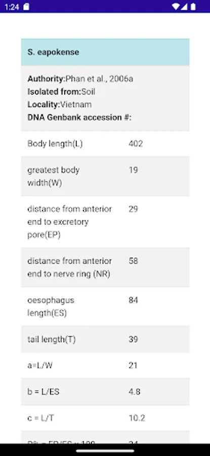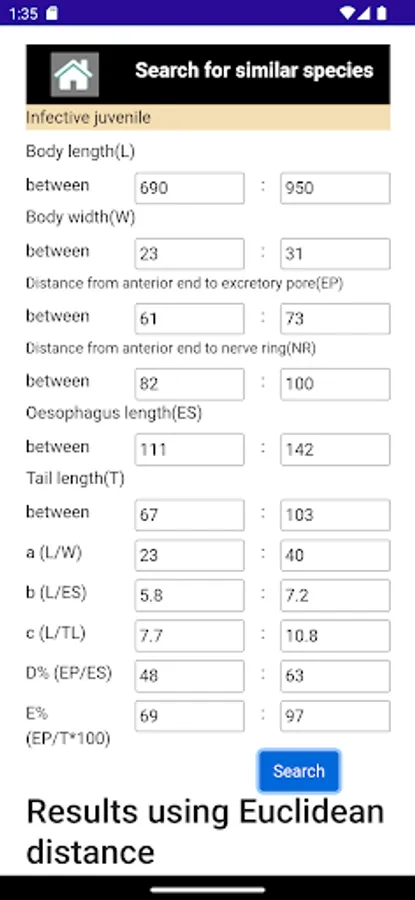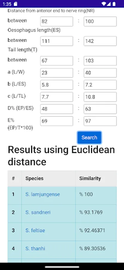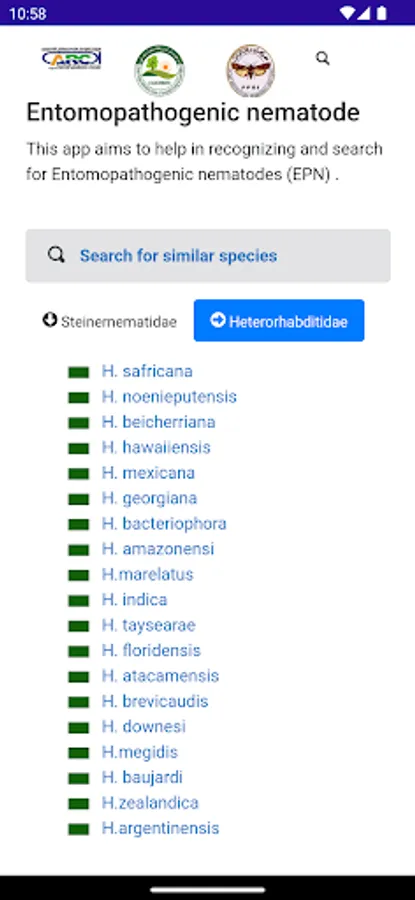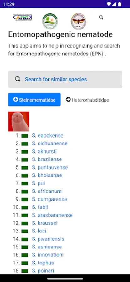 Entomopathogenic Nematodes (EPNs ) are alternatives to chemical pesticides for controlling insects. For researchers, determining the type of EPNs is not an easy task. This app is a tool for identifying EPNs species according to their morphological traits. It displays the details of valid Heterorhabditis and Steinernematidae species. Also, It enables us to find species that are related to the given infective juvenile features