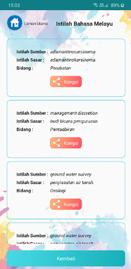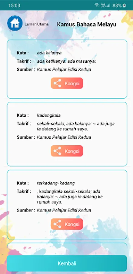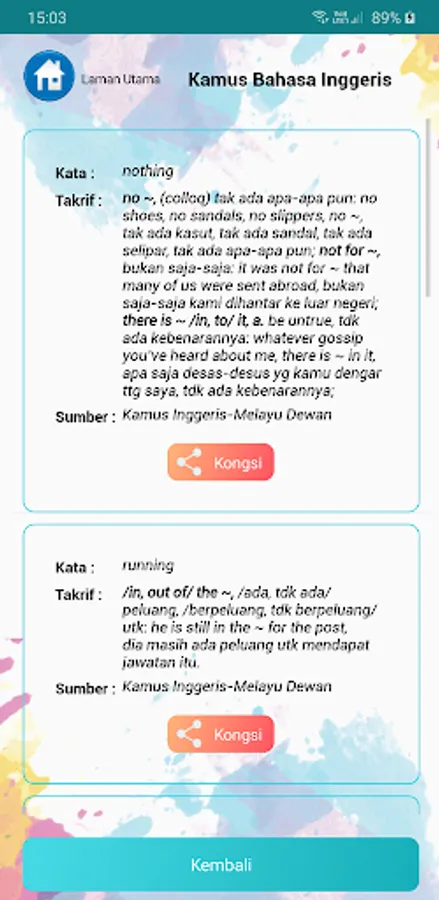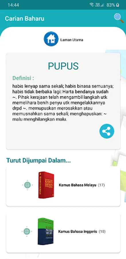Aplikasi ini dapat digunakan untuk membuat carian maksud atau makna yang terbahagi kepada